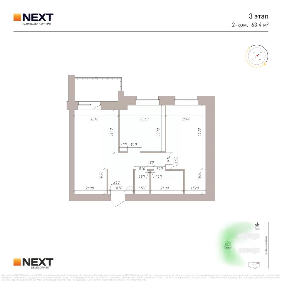 Квартиры в строящемся доме! поз.5 ЖК NEXT на Площади Партизан. Вручение ключей IV квартал 2026 года. ЖК занял 1 место в номинации ''Лучший жилой комплекс в Брянской области''* и 3 место в номинации ''Лучший жилой комплекс в РФ''* в 2025г. Новый жилой комплекс бизнес-класса в историческом центре Брянска. Расположен за Краеведческим музеем рядом с естественным природным массивом. Идеален для тех, кто желает наслаждаться природой, спокойствием и в то же время пользоваться преимуществами жизни в центре. Преимущества жизни в ЖК NEXT на Площади Партизан: - Кирпичные дома - Близость естественного природного массива - Развитая инфраструктура - Удобная транспортная доступность - Авторские планировки - Индивидуальное отопление - Встроенная система ''тёплый пол'' - Отапливаемая лоджия с панорамным остеклением - Высота потолков от 2,7 до 3 м. - В квартирах предусмотрены кухни-гостиные, ниши для шкафов, гардеробные, мастер-спальни. Отделка White Box: - Выполнена полусухая стяжка с фиброволокном, на которую уже можно укладывать финишное покрытие (паркет, ламинат и т.д.) - Полностью установлена система отопления квартиры - Установлена система ''тёплый пол'' - Подготовлены потолки - Все стены выровнены, загрунтованы и оштукатурены - Выровнены откосы - Выполнено панорамное остекление лоджии - Электрическая проводка разведена по комнатам - Установлена надежная металлическая входная дверь фирмы Boyard Территория: - Просторный паркинг - Места для отдыха с беседками - Ландшафтное озеленение территории - Многоуровневое освещение - Двор общей площадью 1,5 ГА. Способы покупки: - ипотека - 100% оплата Подробности и условия уточняйте в офисе продаж: ПН - ПТ с 9:00 до 18:00 СБ с 9:00 до 16:00 или в сообщениях в любое время. Полное сопровождение сделки. Квартира предлагается от застройщика NEXT Development, без комиссий! * ЖК занял 1 место в номинации ''Лучший жилой комплекс-новостройка в Брянской области'' и 3 место в номинации ''Лучший жилой комплекс-новостройка в РФ, многоэтажные дома'' в 2025г.