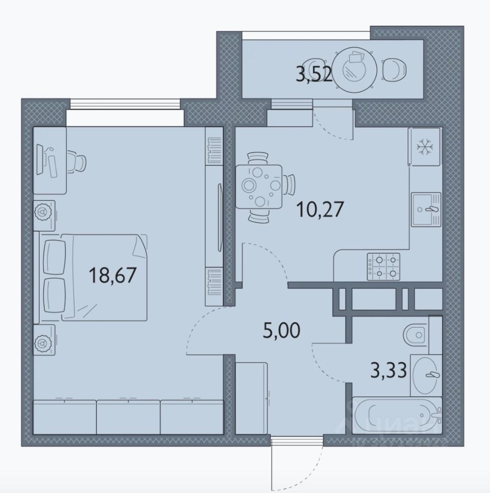 43 м² · Этаж 14 из 16