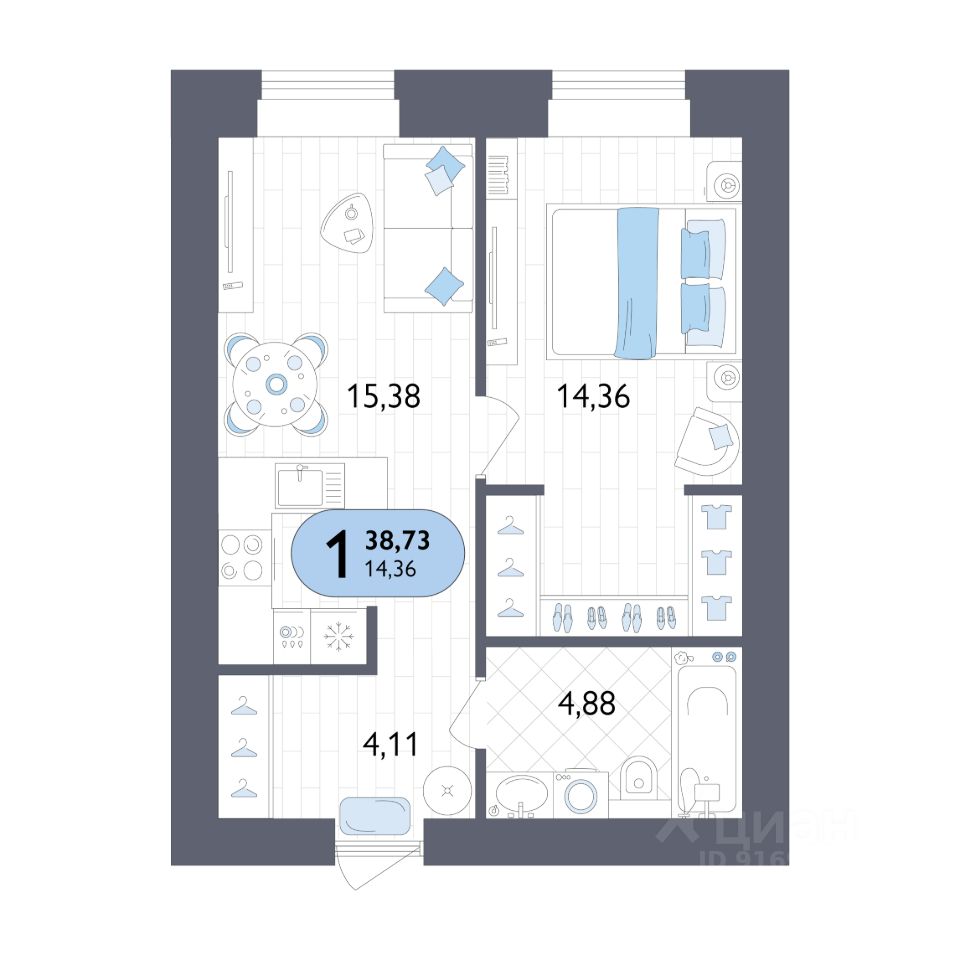 38 м² · Этаж 11 из 14