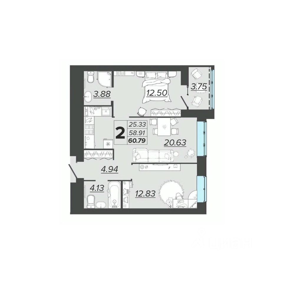 60 м² · Этаж 2 из 9