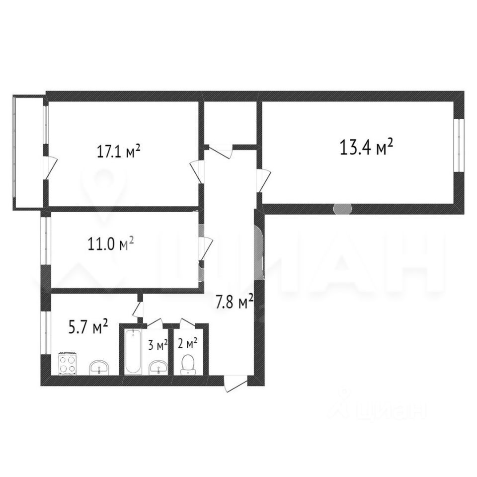 56 м² · Этаж 11 из 11