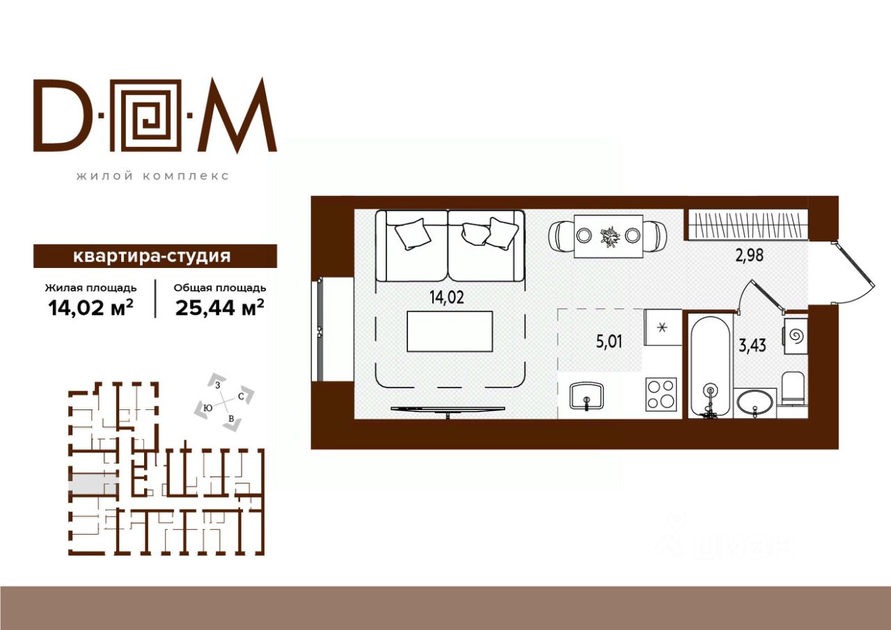 25 м² · Этаж 9 из 14