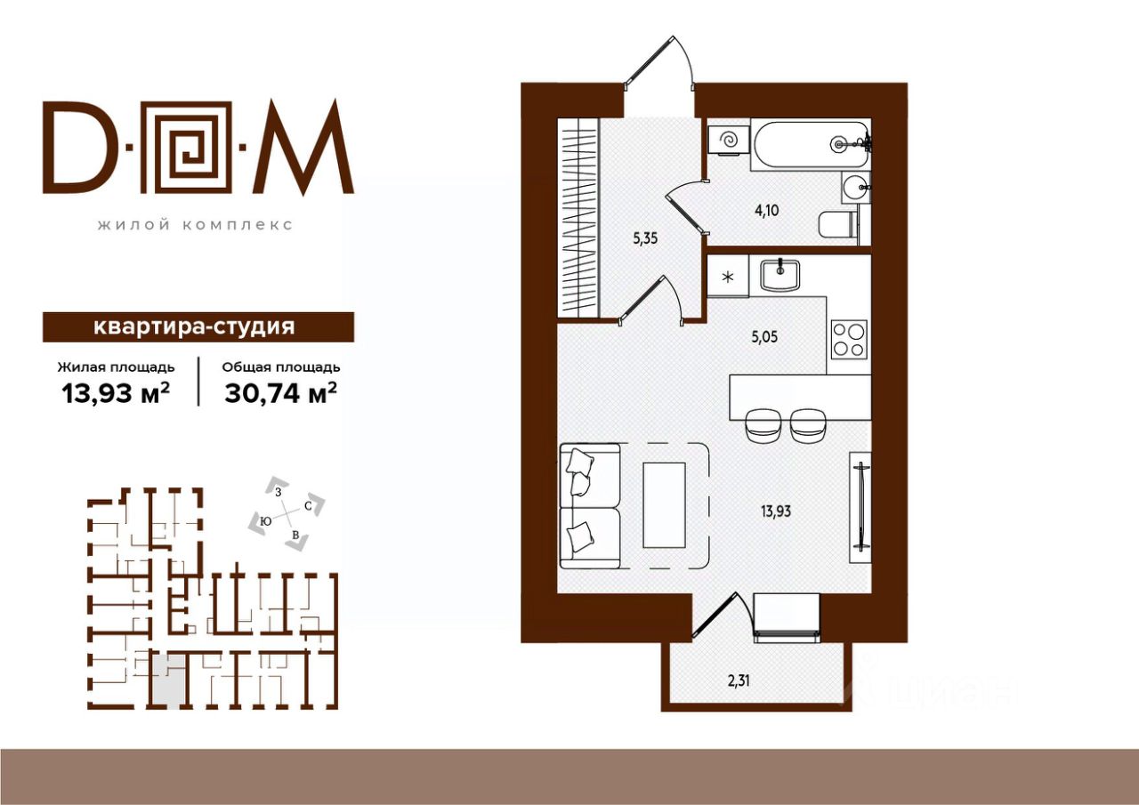 Продаётся студия в строящемся доме (поз.1), срок сдачи: IV-кв. 2027, общей площадью 30.74 кв.м., на 4 этаже. Новый жилой комплекс ''Д.О.М.'' от застройщика ''Надежда'' расположен по адресу: г. Брянск, ул. Романа Брянского