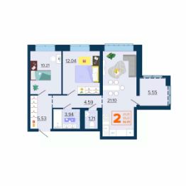 📚 Какая площадь двухкомнатных квартир?