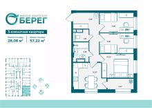 Продаётся 3-комнатная квартира в строящемся доме (поз.2), срок сдачи: IV-кв. 2027, общей площадью 57.22 кв.м., на 15 этаже. Современный жилой комплекс ЖК ''О' Берег'' на ул. Флотской, воплощает идею комфортной, доступной и продуманной городской среды. Комплекс расположен вблизи набережной, в экологически благоприятной зоне города. Панорамный вид на воду и зелёные аллеи усиливают ощущение уюта и создают атмосферу природной гармонии прямо в черте города. Комплекс будет состоять из двух этапов строительства, каждая из которых включает дома до 17 этажей. Первый этап строительства включает 8 жилых домов.