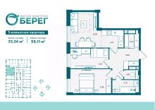 Продаётся 3-комнатная квартира в строящемся доме (поз.2), срок сдачи: IV-кв. 2027, общей площадью 55.11 кв.м., на 3 этаже. Современный жилой комплекс ЖК ''О' Берег'' на ул. Флотской, воплощает идею комфортной, доступной и продуманной городской среды. Комплекс расположен вблизи набережной, в экологически благоприятной зоне города. Панорамный вид на воду и зелёные аллеи усиливают ощущение уюта и создают атмосферу природной гармонии прямо в черте города. Комплекс будет состоять из двух этапов строительства, каждая из которых включает дома до 17 этажей. Первый этап строительства включает 8 жилых домов.