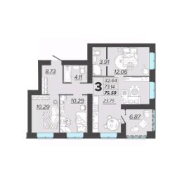 📚 Какая площадь трехкомнатных квартир?
