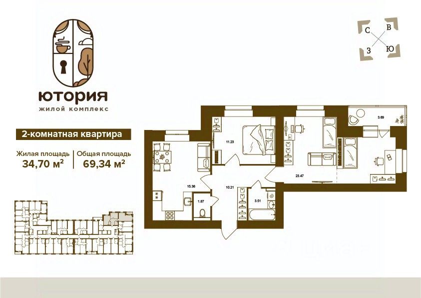 69 м² · Этаж 6 из 16