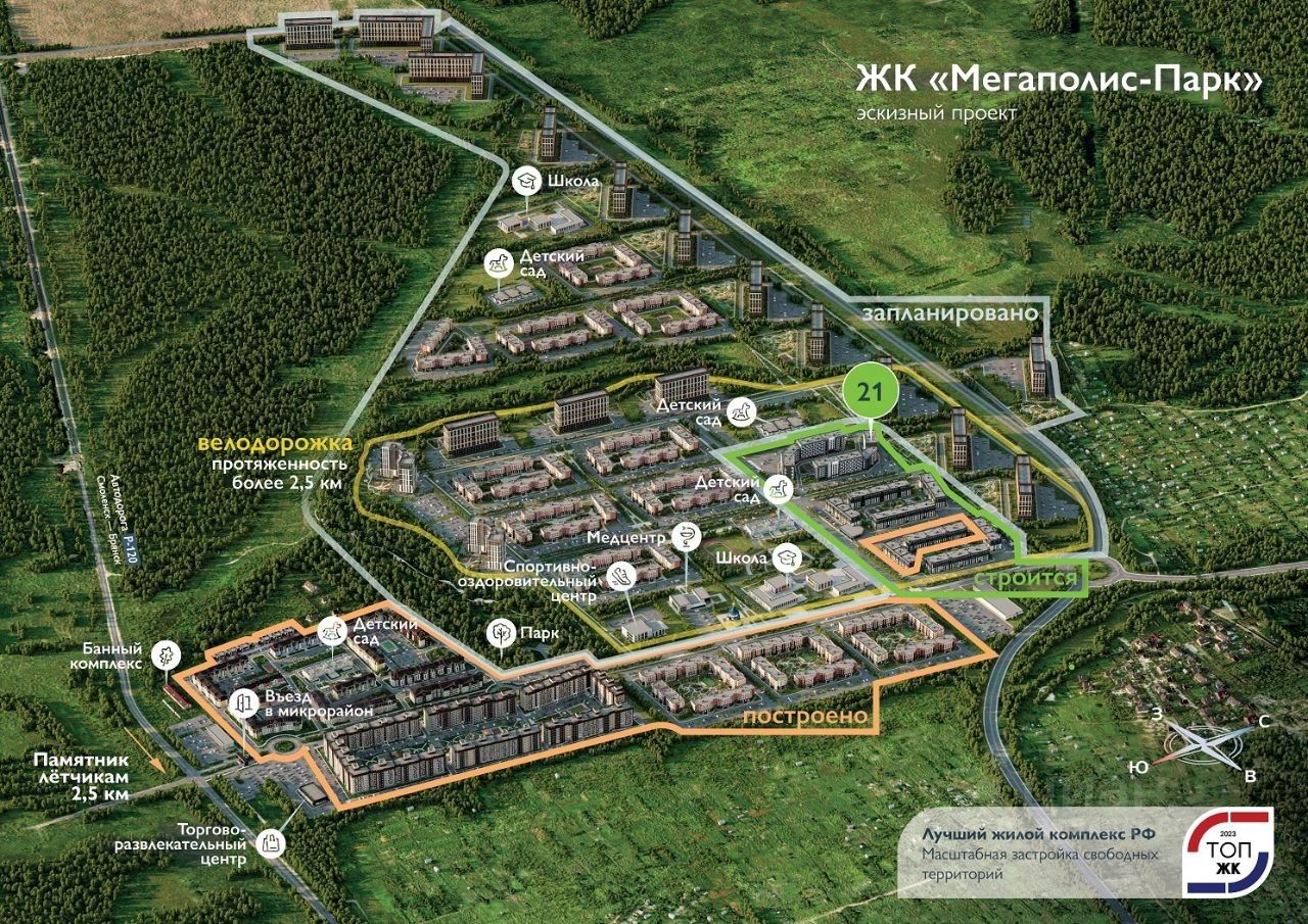 Продаётся 2-комнатная квартира в сданном доме (Мегаполис-Парк, 23к1 (Поз. 21)), срок сдачи: IV-кв. 2025, общей площадью 63.68 кв.м., на 3 этаже. Дом входит в состав ЖК ''Мегаполис-Парк'', это одна из лучших новостроек Брянска расположенная в 5 минутах езды от ''Самолета'', в 1 км. от 4-го Микрорайона. Новостройка включена в транспортную систему Советского района города Брянска, в ЖК ''Мегаполис-Парк'' имеются современные остановки общественного транспорта на территории комплекса. В ЖК ''Мегаполис-Парк'' предусмотрены: 3 детских сада (первый введен в эксплуатацию), спортивный комплекс с бассейном, спа-банный комплекс, медицинский центр, торговый и торгово-развлекательный центры, магазины пошаговой доступности. Парковый комплекс более 10 Га, скверы и пешеходные зоны. На территории пункт полиции и пункт охраны. Квартира подходит под семейную ипотеку и ипотеку с господдержкой со сниженной процентной ставкой, как новое жильё от застройщика. ДОМ: Кирпичный новый дом бизнес-класса от застройщика по индивидуальному проекту. Доступ на поэтажные площадки по электронным ключам Современный скоростной малошумный лифт КВАРТИРА: Стены и полы оштукатурены и выровнены по маякам, Большая кухня-гостиная и отдельная спальня, Утепленная лоджия-кабинет с панорамным остеклением, Индивидуальное отопление с расположением котла на лоджии Климат-контроль отопления (возможность поддерживать заданную температуру в каждой комнате) Панорамные окна, Тёплые полы (ванная, с/у, прихожая, кухня, лоджия), Высококачественная входная дверь. ПРИДОМОВАЯ ТЕРРИТОРИЯ: Контроль доступа на территорию новостройки, видеонаблюдение, ''Двор без машин'' - Огороженная парковка с внешней стороны дома, Детская площадка с усовершенствованным покрытием, Многофункциональная спортивная площадка, беговая дорожка, Зоны отдыха, ландшафтный дизайн, рядом парк, ДОПОЛНИТЕЛЬНО: Отделка квартиры застройщиком с использованием качественных комплектующих (окна, двери) и дополнительной подготовкой поверхностей (выравнивание стен и пола по маякам) позволяет существенно сэкономить время и средства на ремонте нового жилья. ЖК ''Мегаполис-Парк'', считается одной из лучших новостроек Брянска. *** С удовольствием организуем для Вас просмотр квартир от застройщика в удобное время, проведём экскурсию в ЖК ''Мегаполис-Парк''! Подберем персональные условия для покупки. ООО специализированный застройщик ''Мегаполис-Строй''