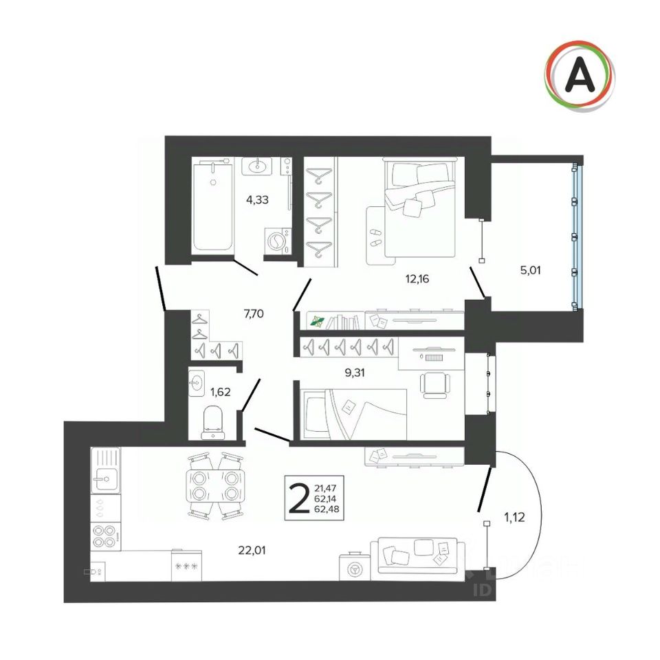 Общая площадь62,5 м2