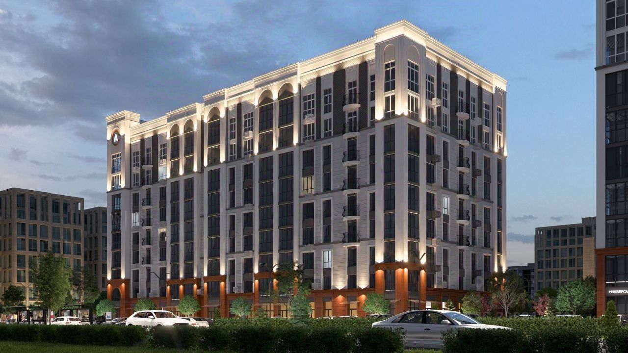 Дом полностью кирпичный, отделка фасада выполнена в утонченном современном классическом стиле, с применением технологии STOMIX и отделкой технологичной и современной мраморной и силиконовой штукатурки. Первый этаж отведен для коммерции и кладовые для жителей.