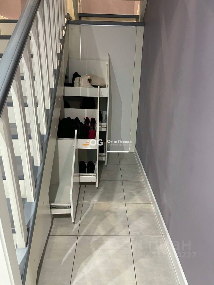 - Встроенная мебель: в комнатах и кухне-гостиной установлены функциональные элементы, а под лестницей встроены вместительные откатные ящики для обуви. Встроенная мебель поможет поддерживать порядок и организованность в вашем новом доме.