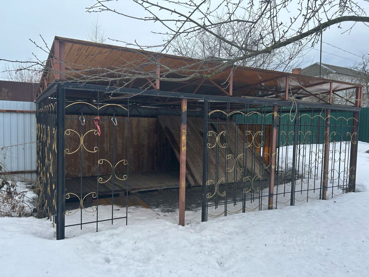 Участок ровный, прямоугольной формы, огорожен высоким забором из профлиста. На участке зона отдыха с камином и барбекю, вольер для собаки.