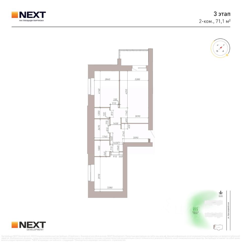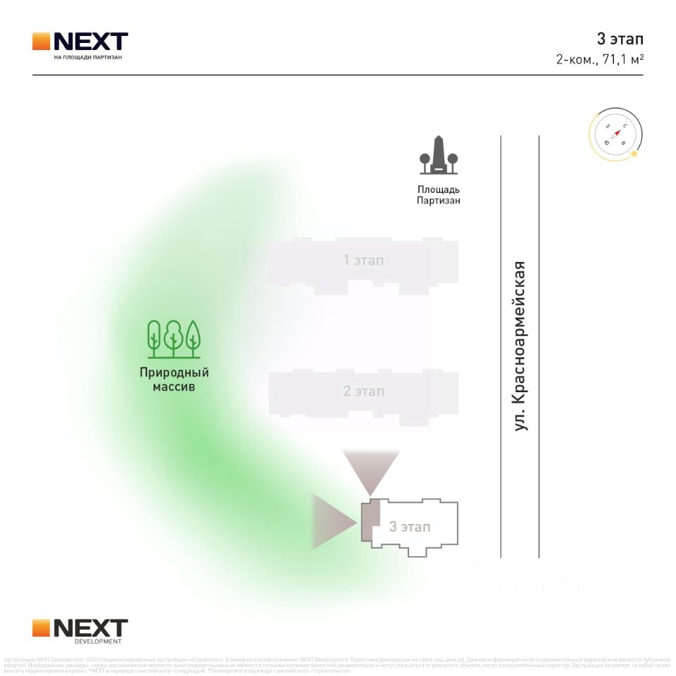 Преимущества жизни в ЖК NEXT на Площади Партизан: - Кирпичные дома - Близость естественного природного массива - Развитая инфраструктура - Удобная транспортная доступность - Авторские планировки - Индивидуальное отопление - Встроенная система ''тёплый пол'' - Отапливаемая лоджия с панорамным остеклением - Высота потолков от 2,7 до 3 м. - В квартирах предусмотрены кухни-гостиные, ниши для шкафов, гардеробные, мастер-спальни.