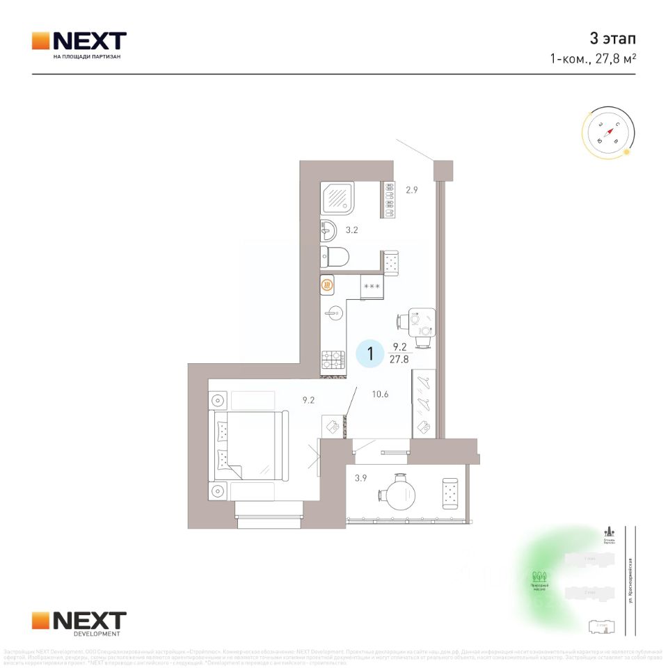Преимущества жизни в ЖК NEXT на Площади Партизан: - Кирпичные дома - Близость естественного природного массива - Развитая инфраструктура - Удобная транспортная доступность - Авторские планировки - Индивидуальное отопление - Встроенная система ''тёплый пол'' - Отапливаемая лоджия с панорамным остеклением - Высота потолков от 2,7 до 3 м. - В квартирах предусмотрены кухни-гостиные, ниши для шкафов, гардеробные, мастер-спальни.