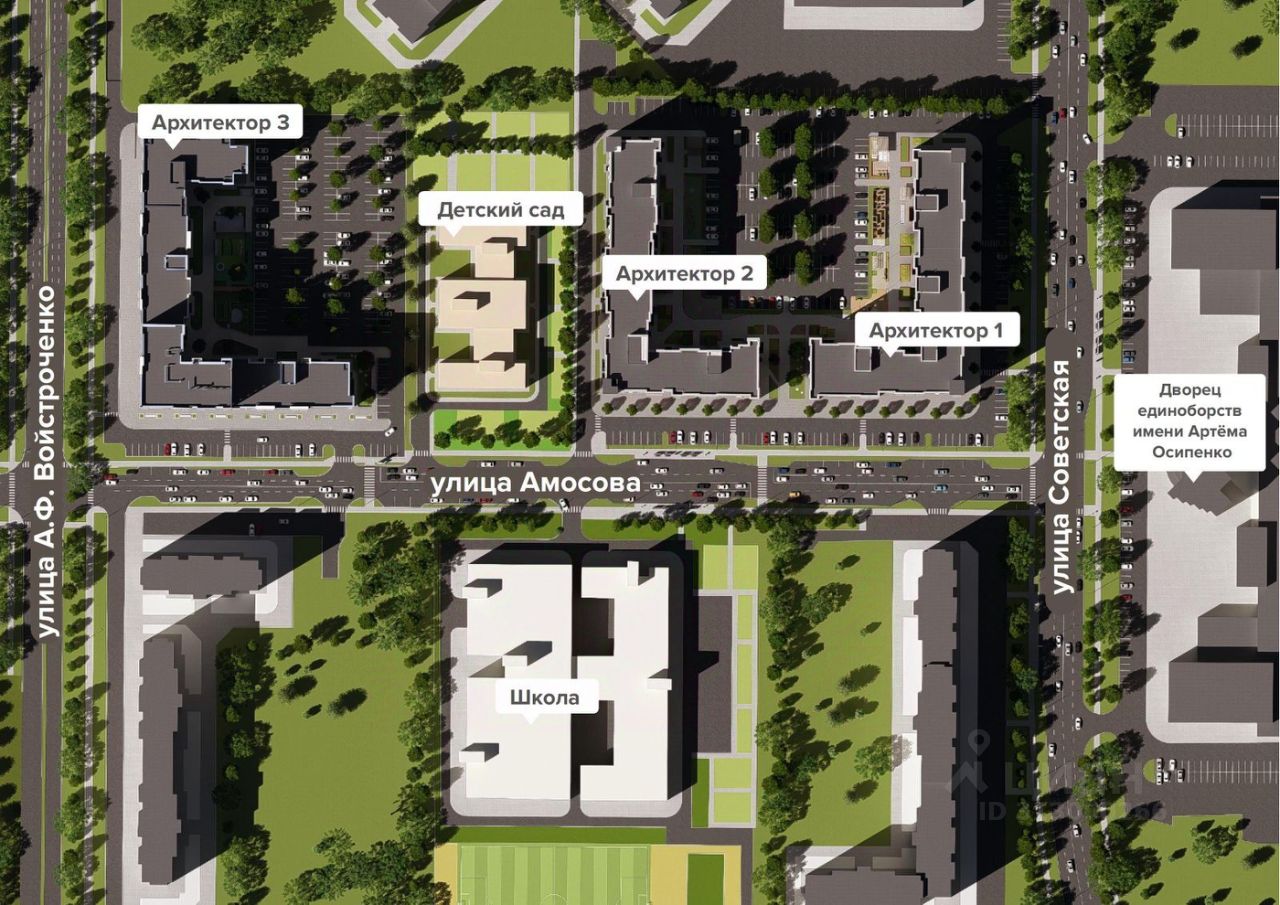 ЖК ''Архитектор'', 3 дом — дом, где продумано всё до деталей Советский район, пересечение Войстроченко и Амосова. Сдача — 1 квартал 2027 года ________________________________________ Прямые продажи от застройщика Без комиссии Ипотека от 6% — семейная, IT, с господдержкой Бесплатно подаём заявки во все банки города Сопровождаем сделку до ключей ________________________________________ Почему ''Архитектор'' — это больше, чем просто жильё? 1. Современный кирпичный дом комфорт-класса Технология STOMIX: фасад с утеплением и стильной отделкой алюмокомпозитными панелями. 2. Дом переменной этажности (915 этажей) с индивидуальной крышной котельной — это тепло, автономия и экономия на коммунальных круглый год. 3. Квартиры с комфортом продуманным до мелочей: — Высокие потолки 2,73 м — Увеличенные окна (высота от пола всего 50 см) — Энергосберегающие стеклопакеты с усиленной шумоизоляцией — Панорамное остекление лоджий с тонировкой — Предчистовая отделка white box — стены выровнены, сделана стяжка, электрика, гидроизоляция и разводка отопления — Стальные радиаторы — Корзины для кондиционеров и детские замки на окнах — Надёжная входная дверь с замком 3 класса защиты — Противопожарные датчики — ваша безопасность на первом месте ________________________________________ Комфорт начинается с первого шага: — Авторский дизайн холлов с высокими потолками — Удобная навигация — Вход на уровне земли — удобно для всех — Колясочная с индивидуальным доступом ________________________________________ Закрытая территория с видеонаблюдением и продуманным двором для жизни: — Просторная нейродинамическая детская площадка 900 м² — Зеленая зона отдыха с шезлонгами и беседками — Спортивная зона, настольный теннис, воркаут — Вело-беговая дорожка почти 500 м — 4 уровня озеленения и освещения — Зарядка для электромобилей ________________________________________ Локация — в сердце нового центра Советского района Всё рядом — магазины, аптеки, кафе, детские центры, фитнес, бассейн, ТЦ ''Аэропарк'', Медси. В 510 минутах пешком: — Школа 71 ( второй корпус) — Школа иностранных языков — Детские сады: Гармония, Тюльпанчик, Росинка — Поликлиника — Остановки транспорта