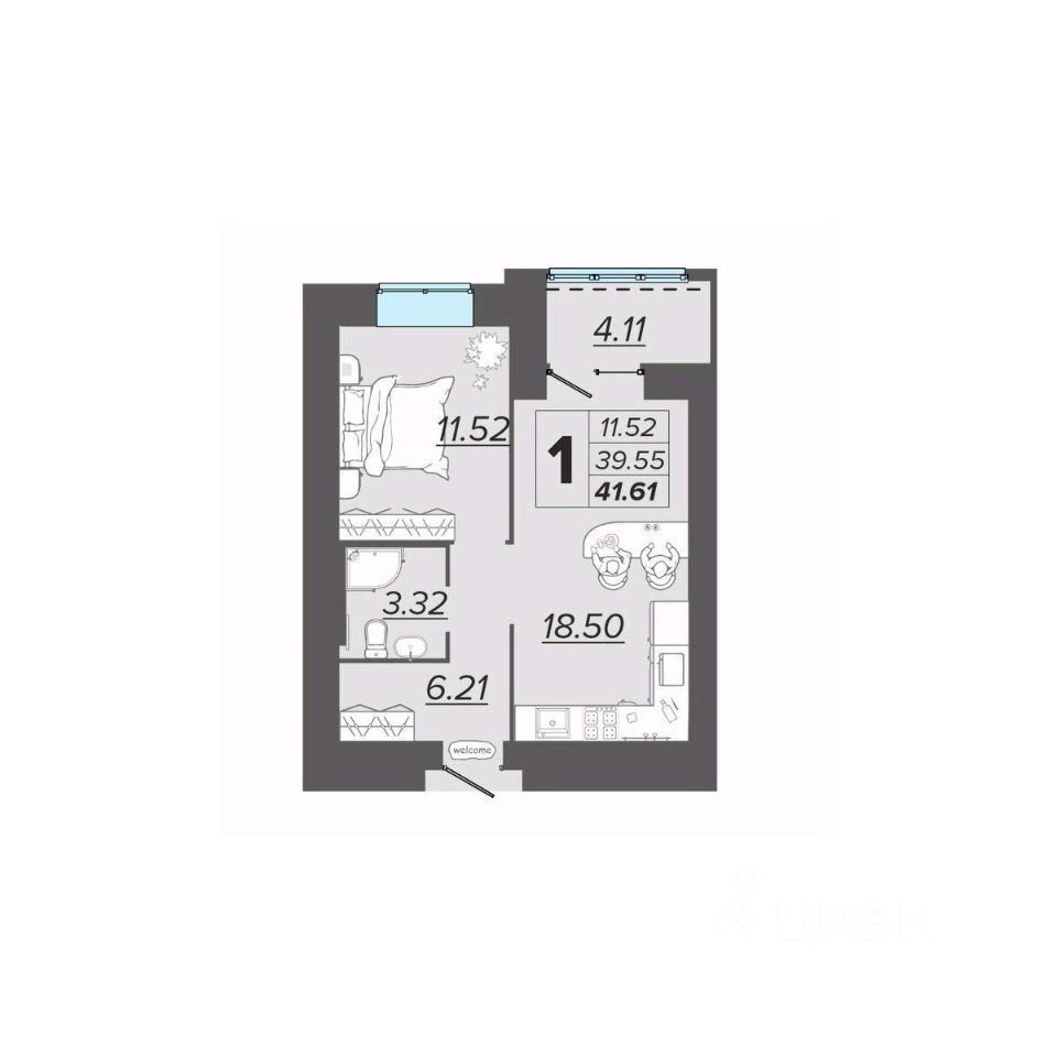 Общая площадь41,61 м2