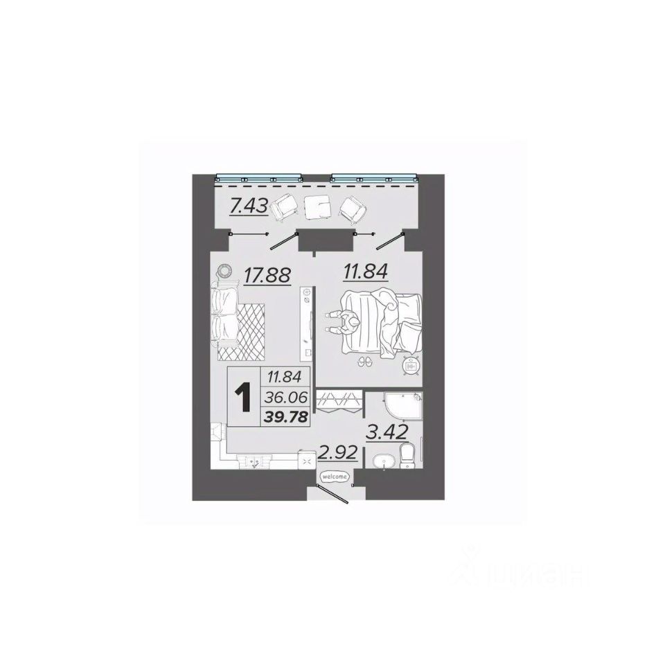 Общая площадь39,78 м2