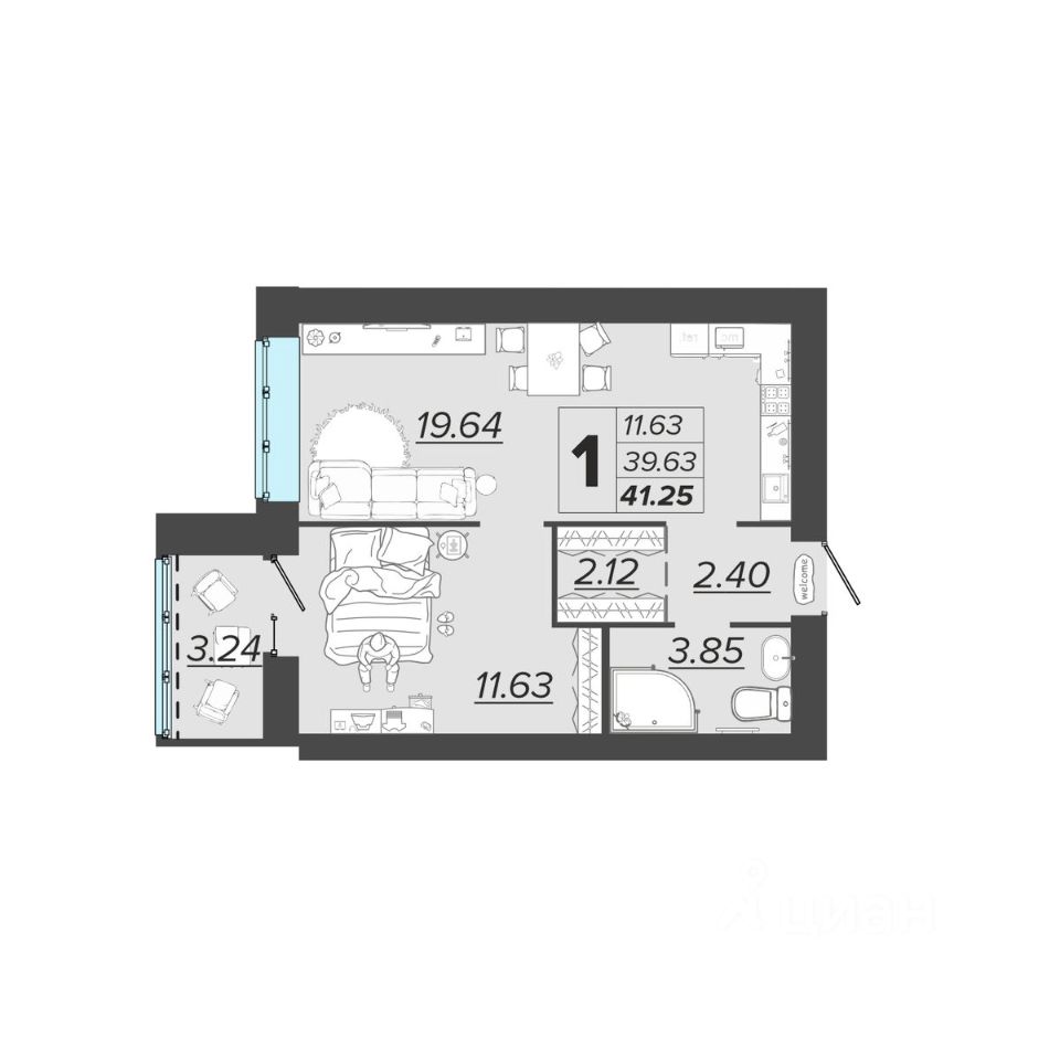 Общая площадь41,25 м2