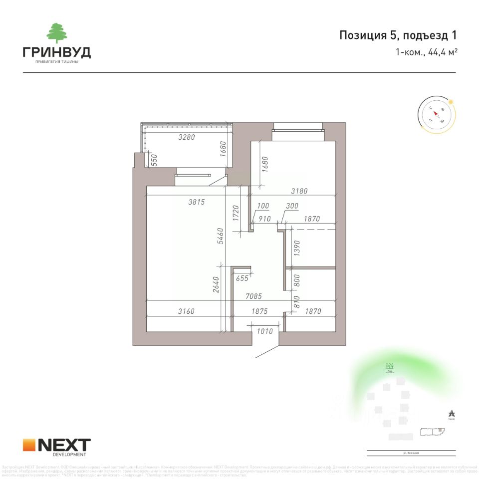 ''Гринвуд'' гордится своей локацией: удобный и быстрый выезд в соседние районы города, в пешей доступности Курган, Центральный парк культуры и отдыха, добраться на машине за 5 минут можно до ТРЦ ''Аэропарк'', ТЦ ''Европа'' и Дворца единоборств им. Артёма Осипенко.