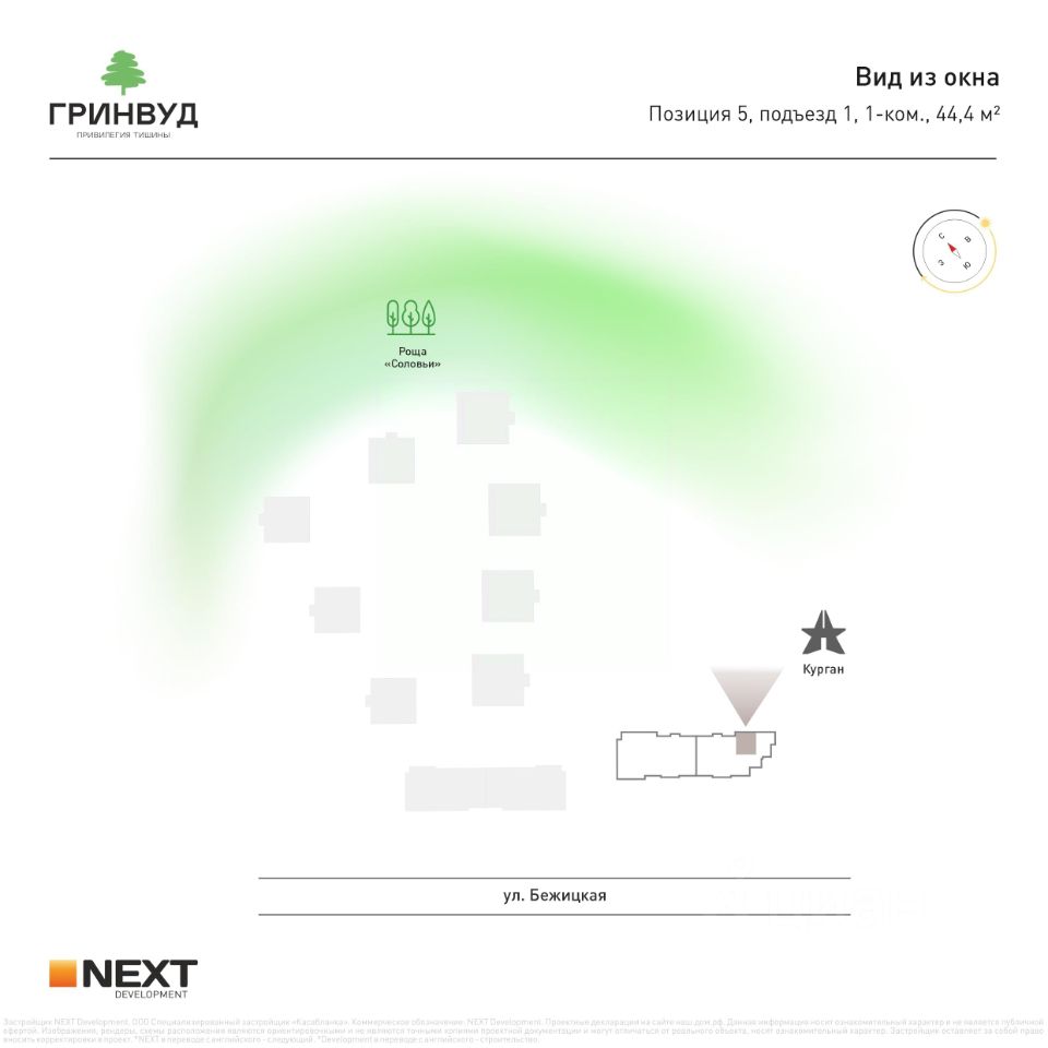 Локация ''ГРИНВУД'' расположен на ул. Степная рядом с рощей ''Соловьи''. Удобный и быстрый выезд в соседние районы города, в пешей доступности Курган, Центральный парк культуры и отдыха, добраться на машине за 5 минут можно до ТРЦ ''Аэропарк'', ТЦ ''Европа'' и Дворца единоборств им. Артёма Осипенко.