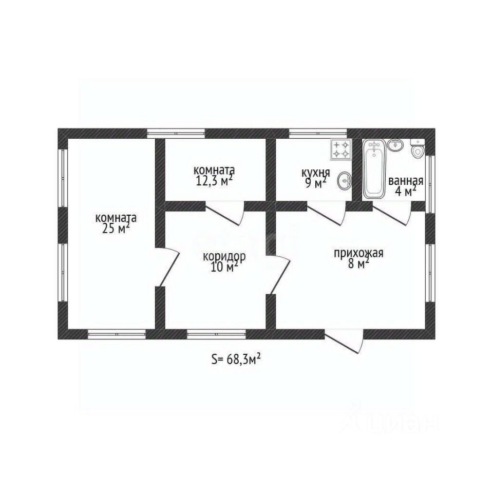 Общая площадь68,3 м2