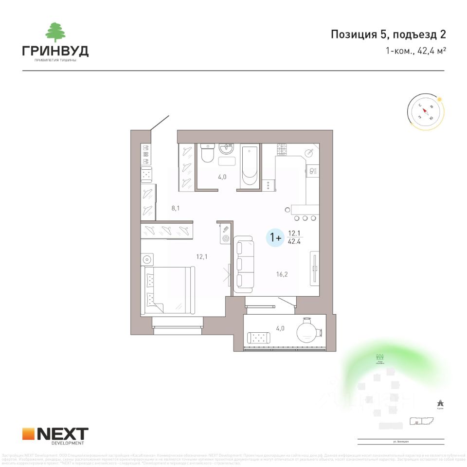 Полное сопровождение сделки. Квартира предлагается от застройщика NEXT Development без комиссий!