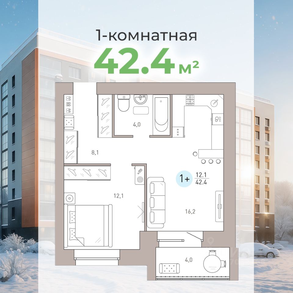 Общая площадь42,4 м2