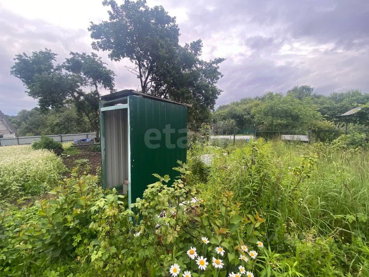 На территории уже имеется садовый домик площадью 12,1 кв. м, который можно использовать для хранения инструментов и временного отдыха.