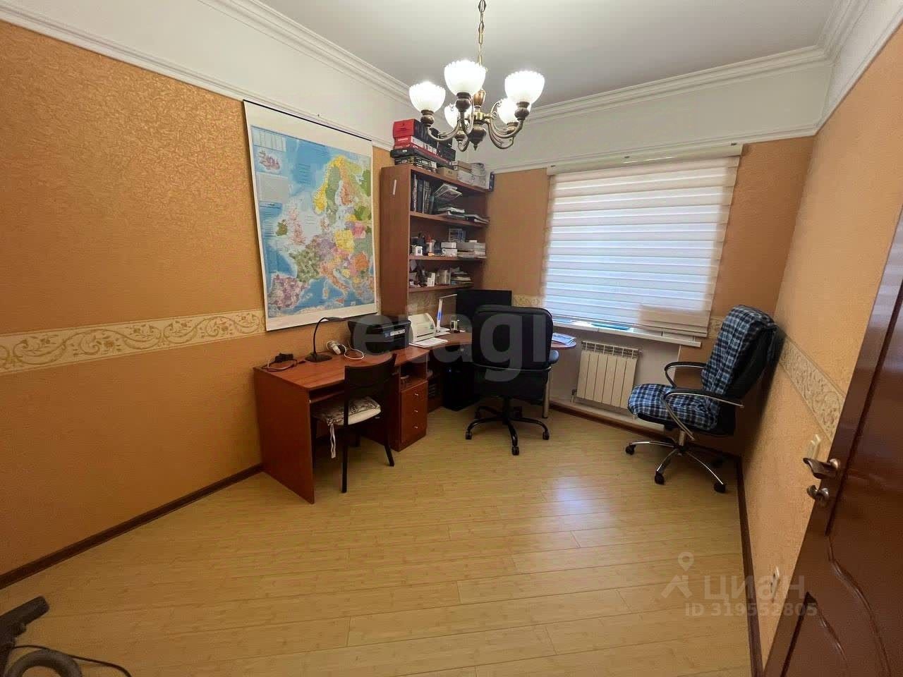 Планировка: - Цоколь: котельная, погреб, коллекторная, 2 свободные комнаты. - 1 этаж: кухня-гостиная с кондиционером, зимний сад, санузел, кладовые. - 2 этаж: 4 спальни с гардеробными, кабинет, зимний сад, санузел.