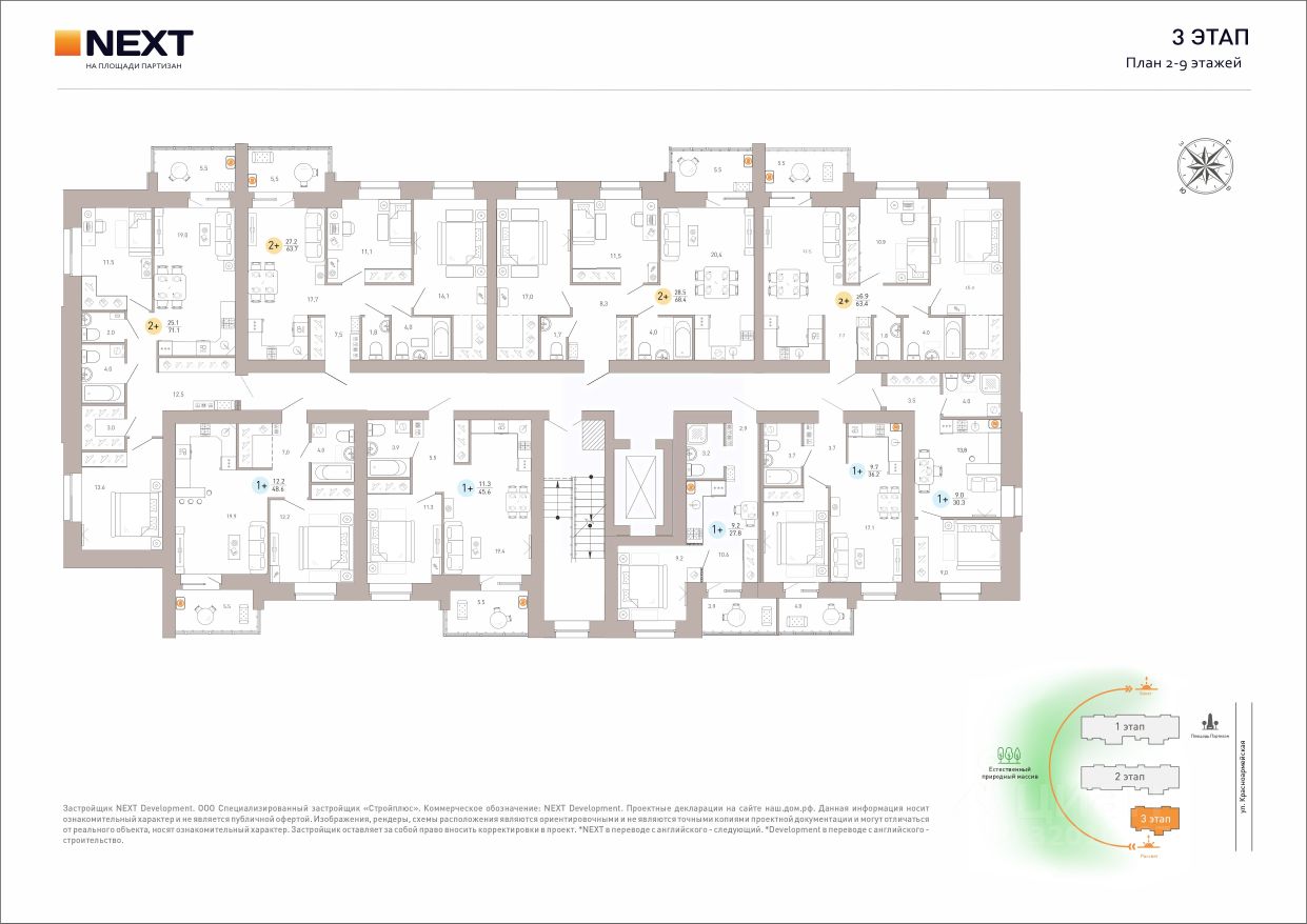 Преимущества жизни в ЖК NEXT на Площади Партизан: - Кирпичные дома - Близость естественного природного массива - Развитая инфраструктура - Удобная транспортная доступность - Авторские планировки - Индивидуальное отопление - Встроенная система ''тёплый пол'' - Отапливаемая лоджия с панорамным остеклением - Высота потолков от 2,7 до 3 м. - В квартирах предусмотрены кухни-гостиные, ниши для шкафов, гардеробные, мастер-спальни.