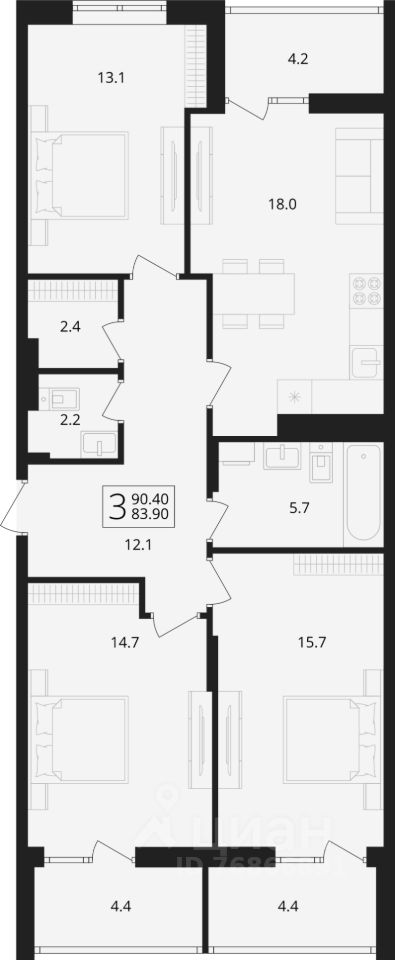 Общая площадь90,4 м2
