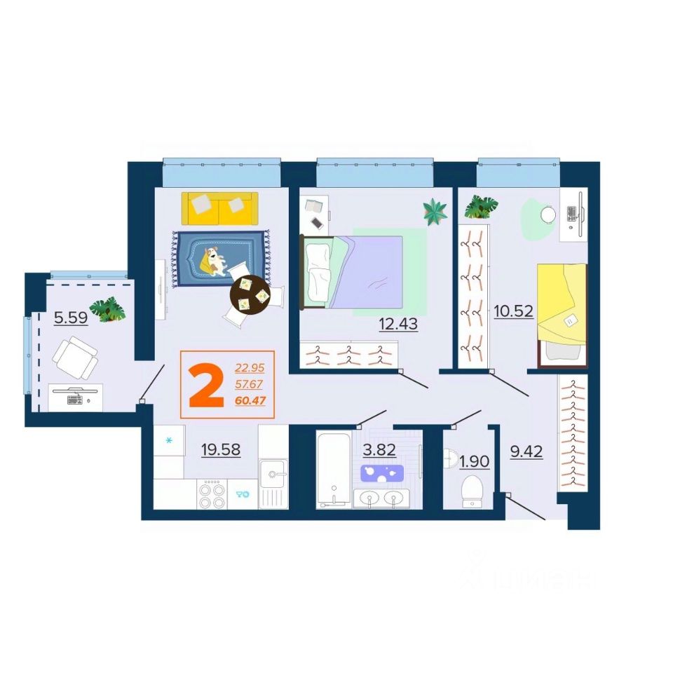 Общая площадь60,47 м2