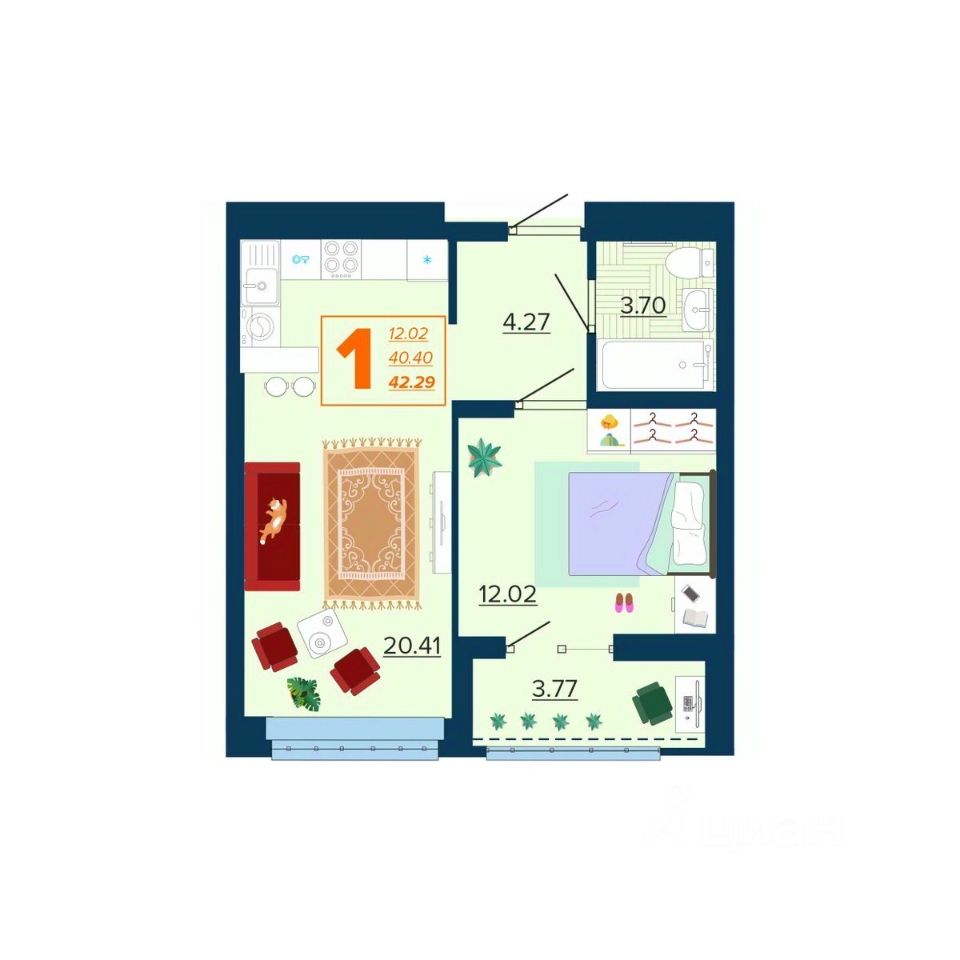 Общая площадь42,29 м2