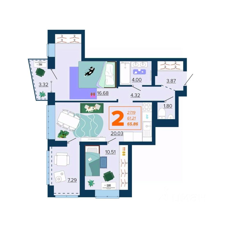 Общая площадь65,86 м2