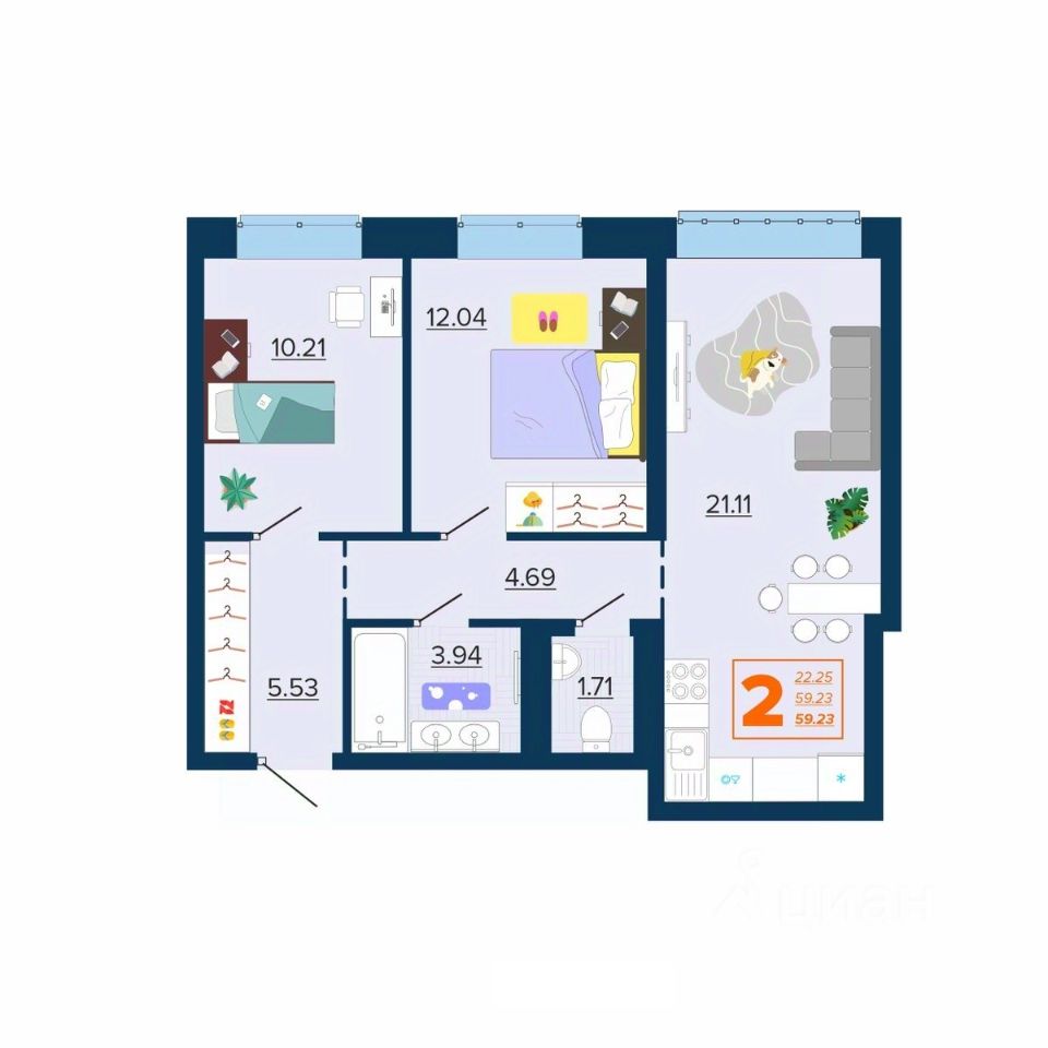 Общая площадь59,23 м2
