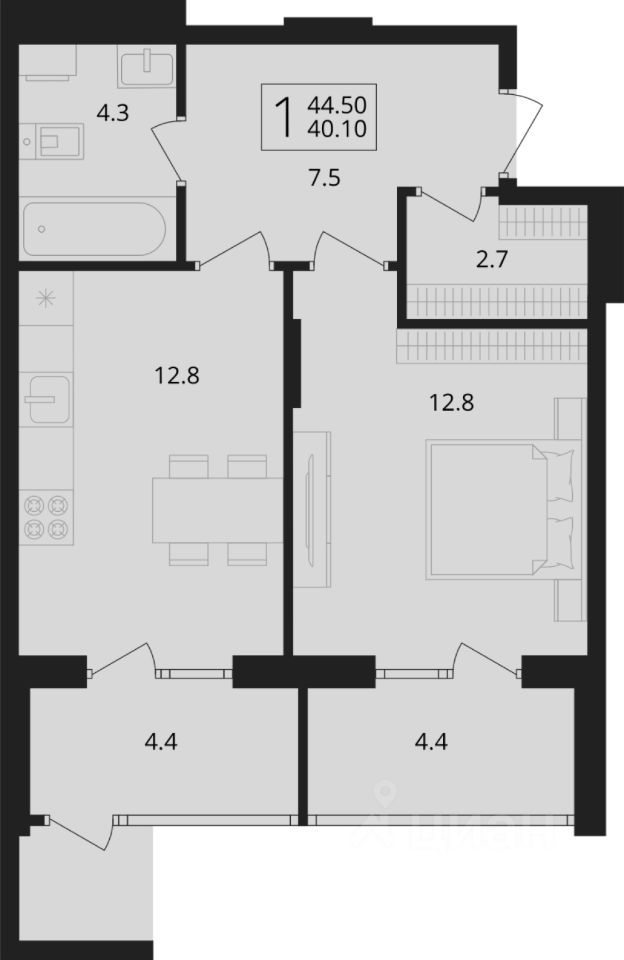 Общая площадь44,5 м2