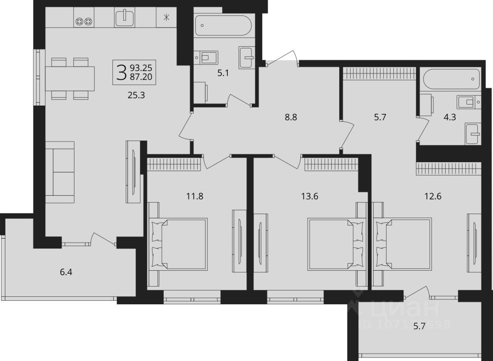 Общая площадь93,25 м2