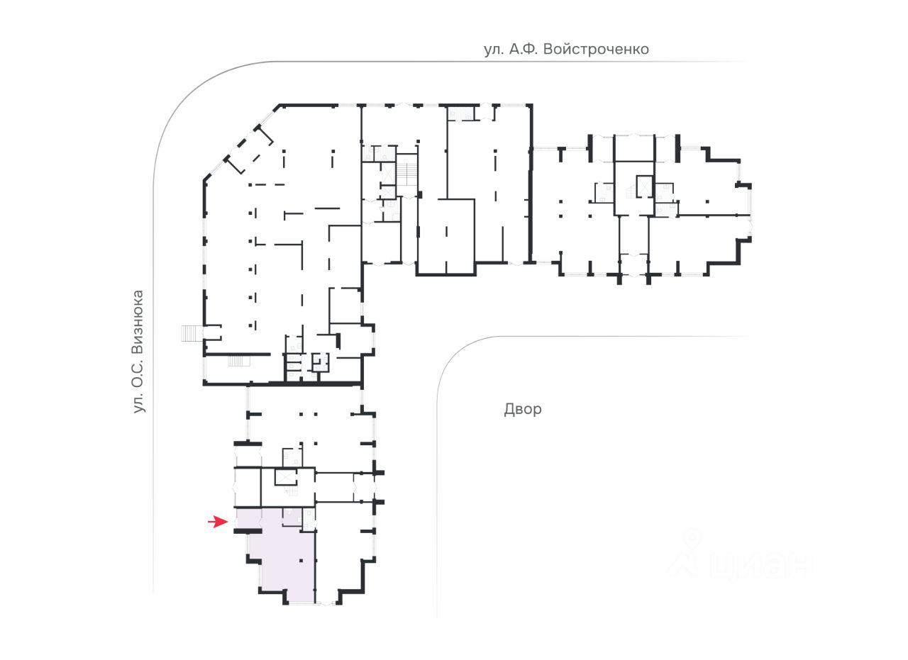 Аренда коммерческого помещения площадью 72,87 м2 по адресу ул. А.Ф. Войстроченко, дом 7 в ЖК ''Видный'' в Советском районе. Помещение расположено на первой линии, то есть имеет отдельный выход к проезжей части, рядом просторная парковка. Здесь высокая проходимость, в районе проживает более 15 000 жителей, район с развитой инфраструктурой. В шаговой доступности: 3 школы и лицей им. А.С. Пушкина, 3 детских сада, городские парки, магазины повседневного спроса, ТРЦ Аэропарк.