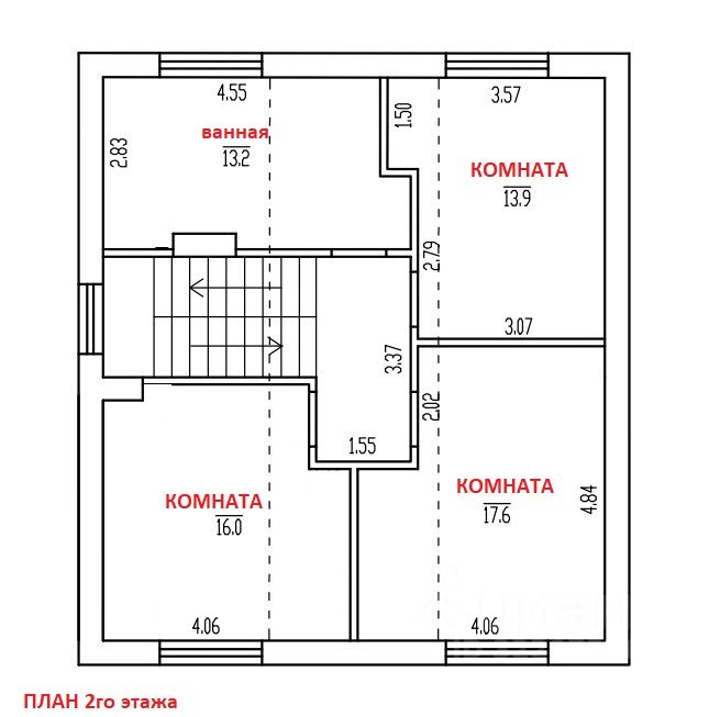 На 2 этаже расположены: три спальни с нишами под встроенные шкафы, - большая ванная комната 13 кв.м (с окном).