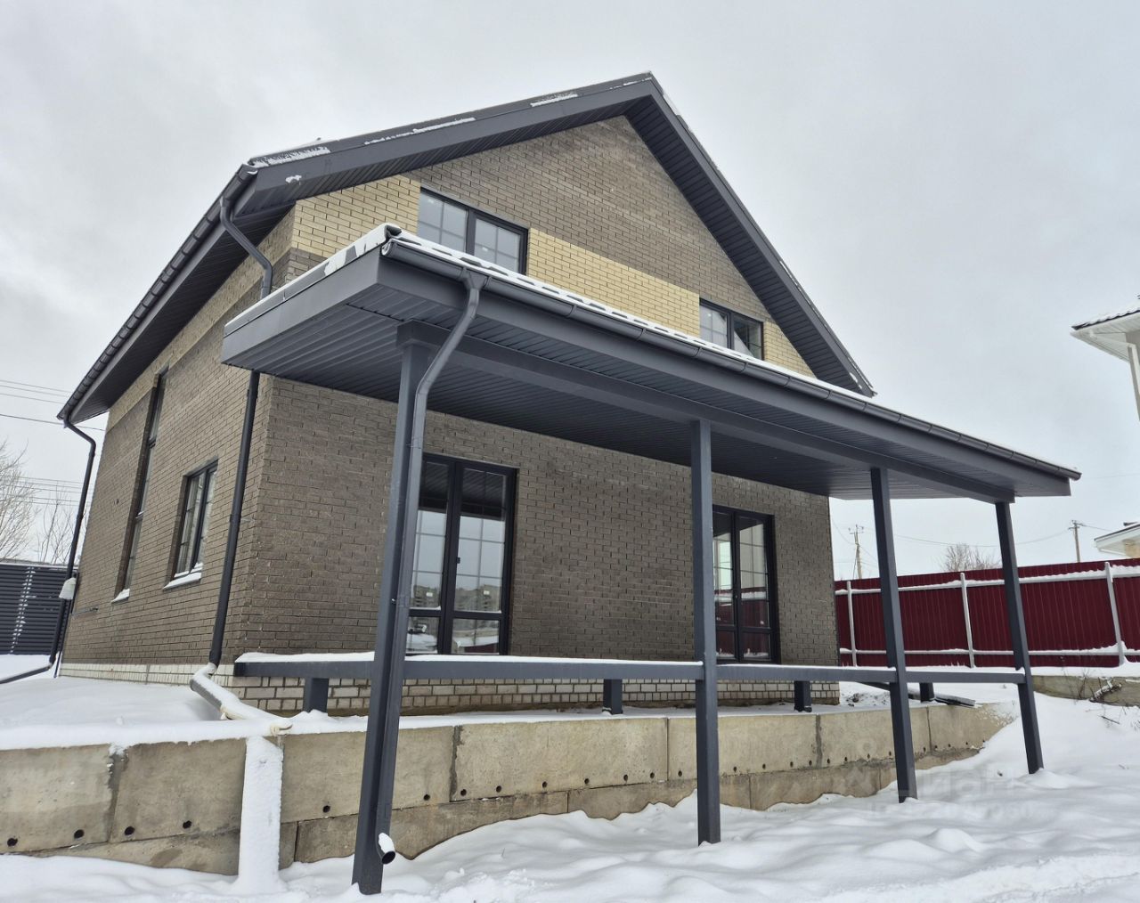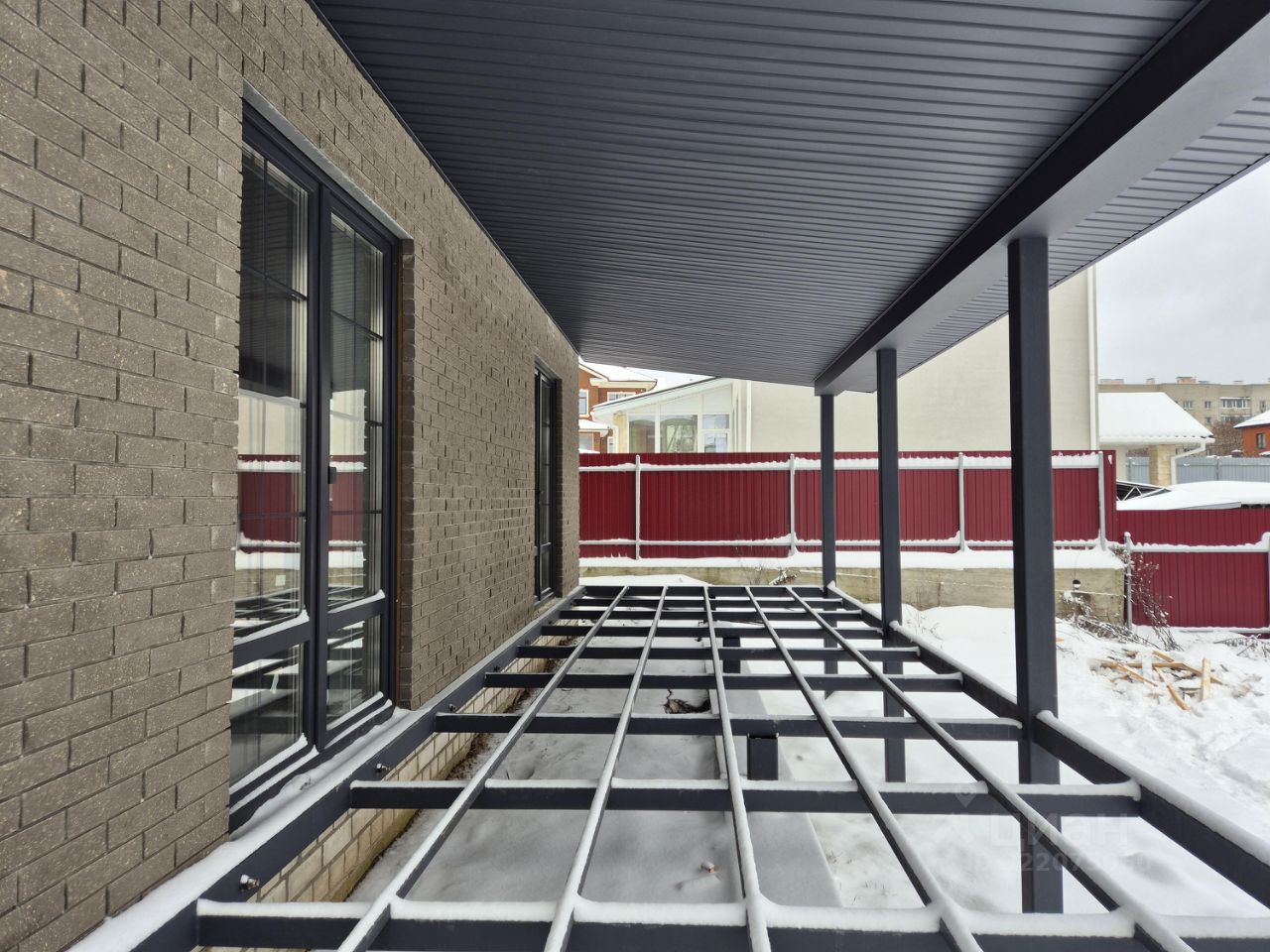 Некоторые работы находятся в стадии завершения (козырек над входом в дом и установка кровли над террасой, установка забора с автоматическими въездными воротами с фасадной стороны), которые будут закончены в ближайшее время.