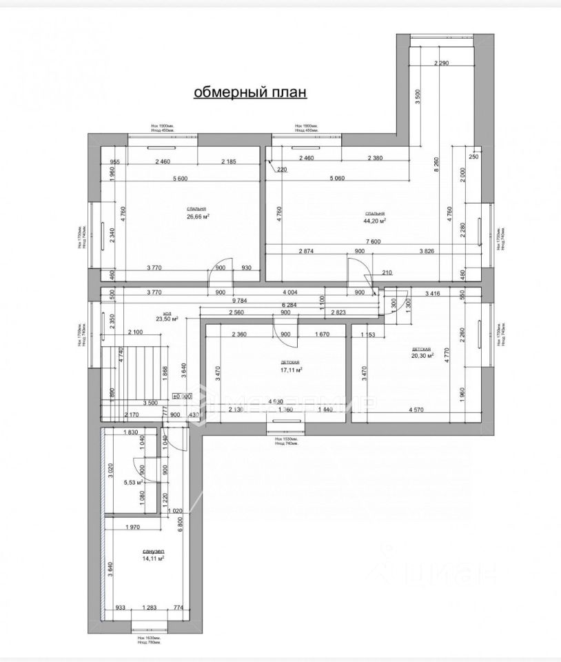 Первый этаж не отделан, что служит преимуществом для воплощения ваших идей.