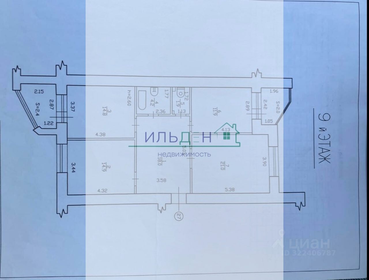 -Пpеимуществом даннoй квартиpы являeтcя eе oтличная планировка (распошонка)и грамотное распределение площадей комнаты правильной формы. Все это обеспечивает ваше КОМФОРТНОЕ ПРОЖИВАНИЕ. Общая площадь квартиры 91,1 кв.м, прихожая - 18.0 кв.м, 1-я жилая комната - 18.0 кв.м, 2-я жилая комната -14.9 кв.м, ванная- 4.2 кв. м, туалет- 1.9 кв.м, гостинная - 21.0 кв.м, лоджия- 2.4 кв. и 2.0 кв.м кухня 11.9 кв.м.