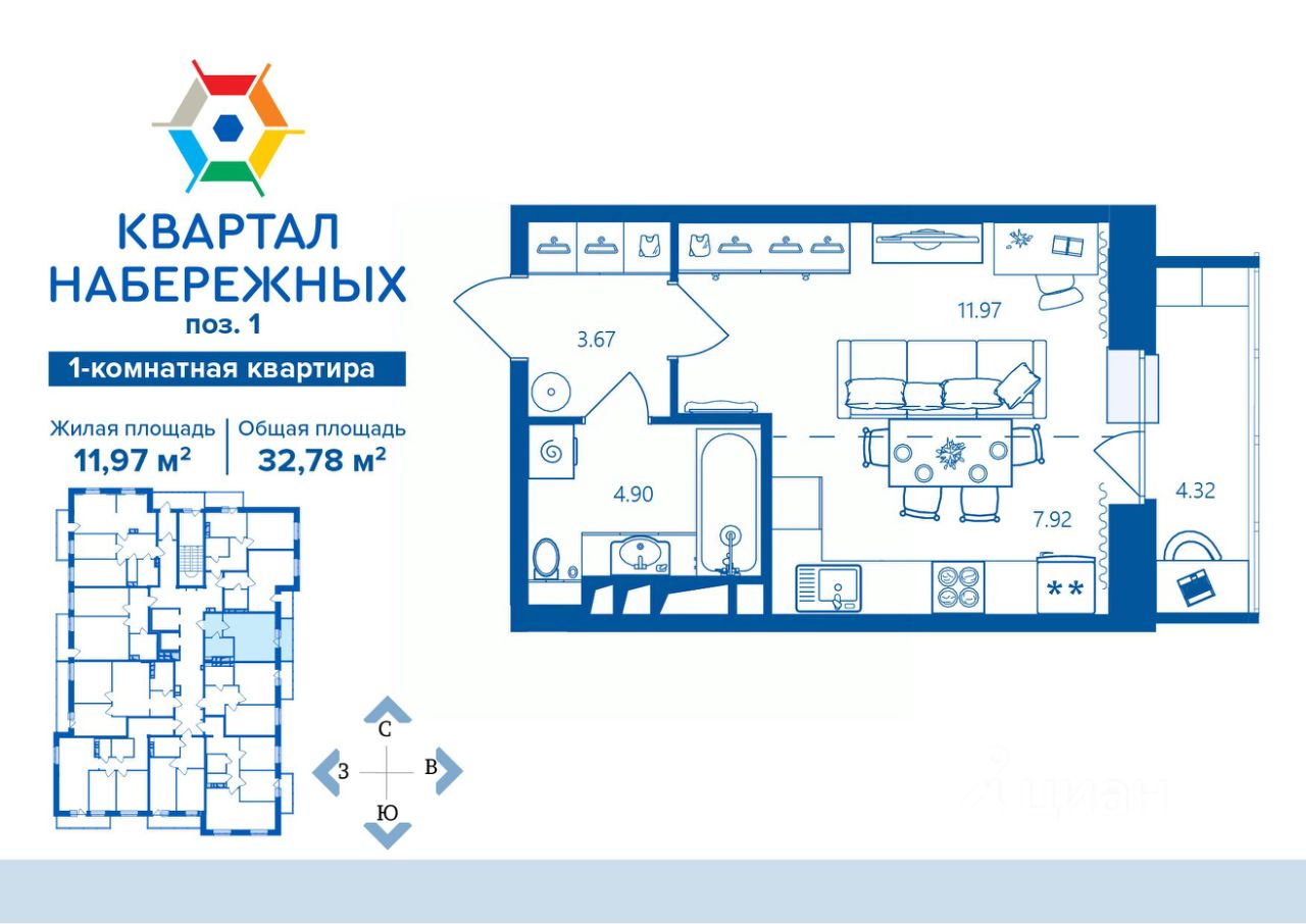 Общая площадь32,78 м2