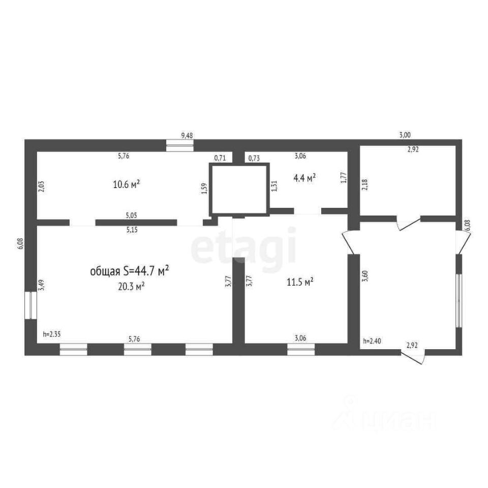 Общая площадь44,7 м2