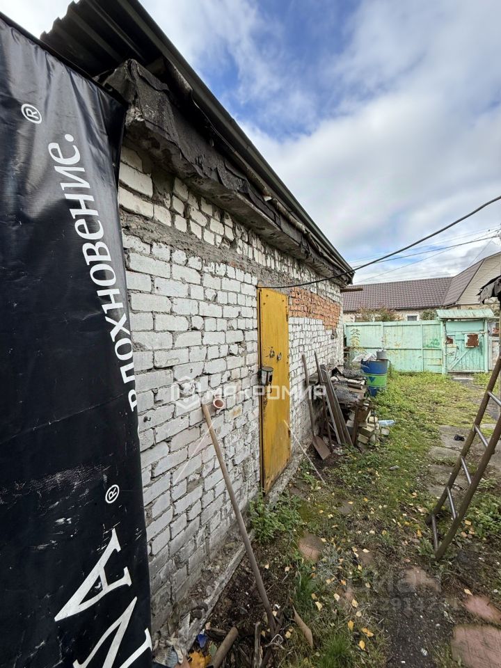 -На участке кирпичный гараж и хоз постройки.