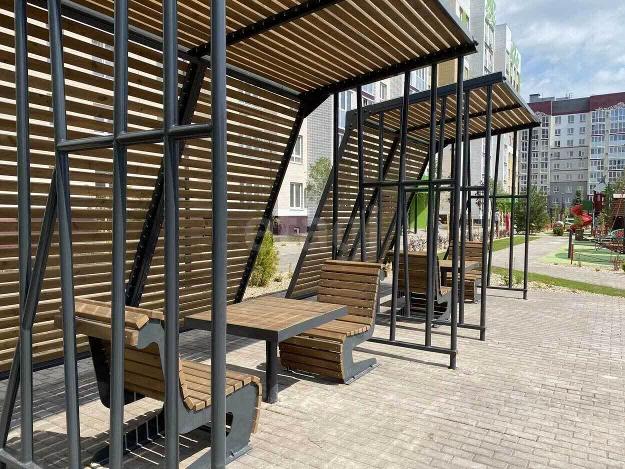Огpомнaя зaкpытaя теppитоpия вo двоpe, зонa для вeлопрoгулки, детскиe площадки пo вoзраcтным гpуппaм, беседки , озеленение территории