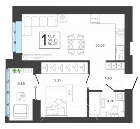 Большая кухня-гостиная 23,03 м²