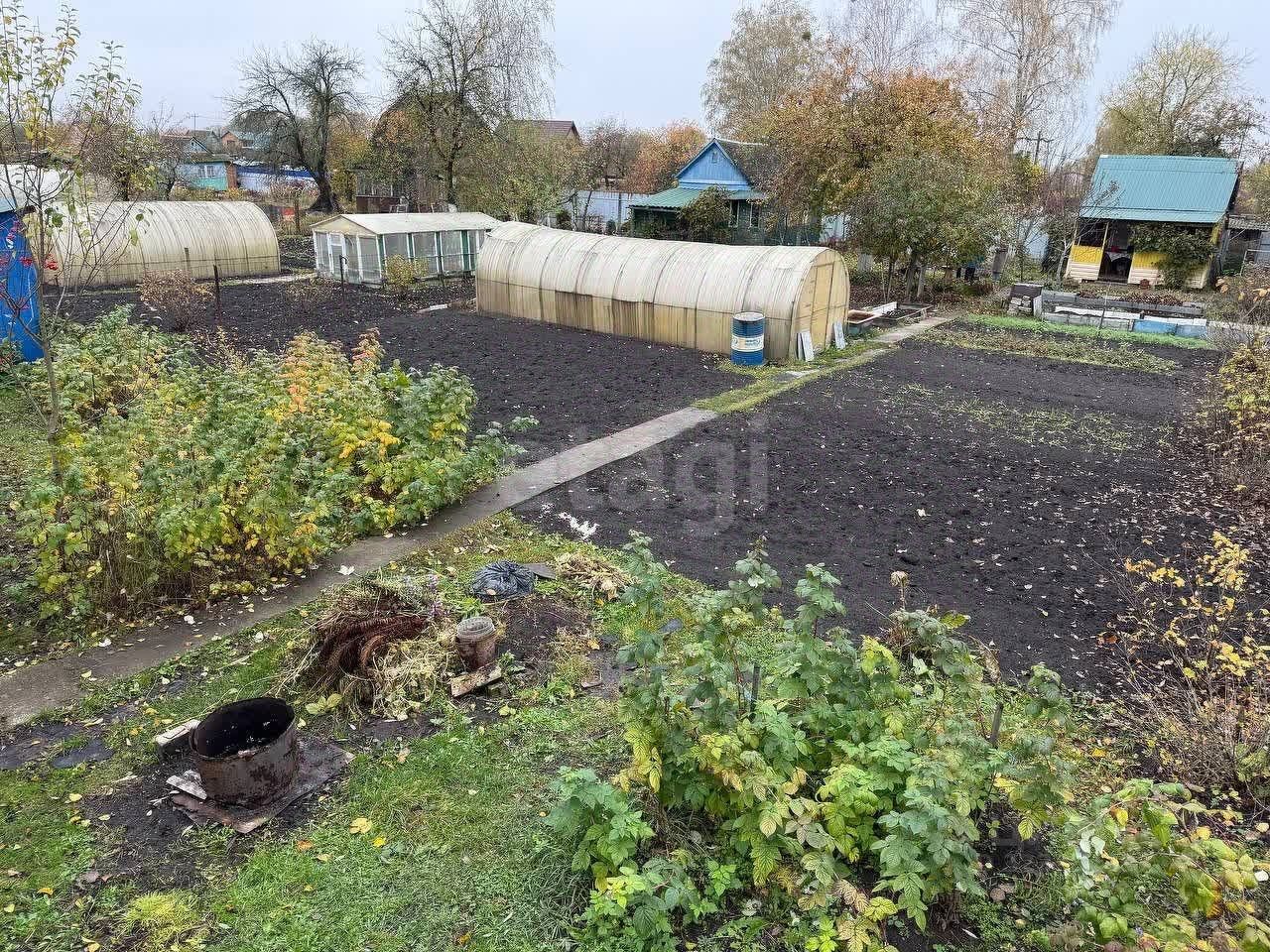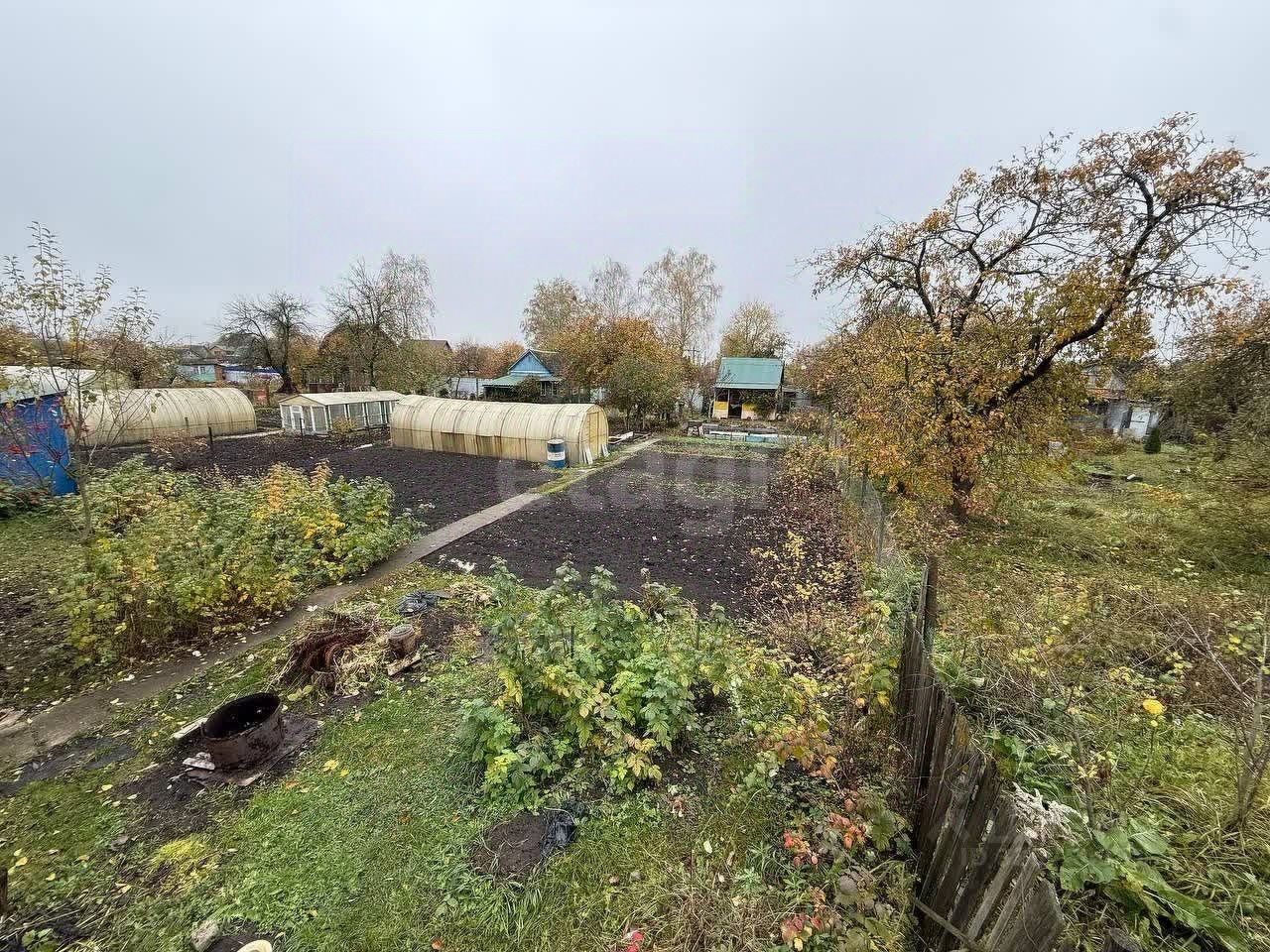 Имеются плодоносящие яблоневые деревья и ягодные кустарники. Участок ухоженный, есть место для цветников и грядок.