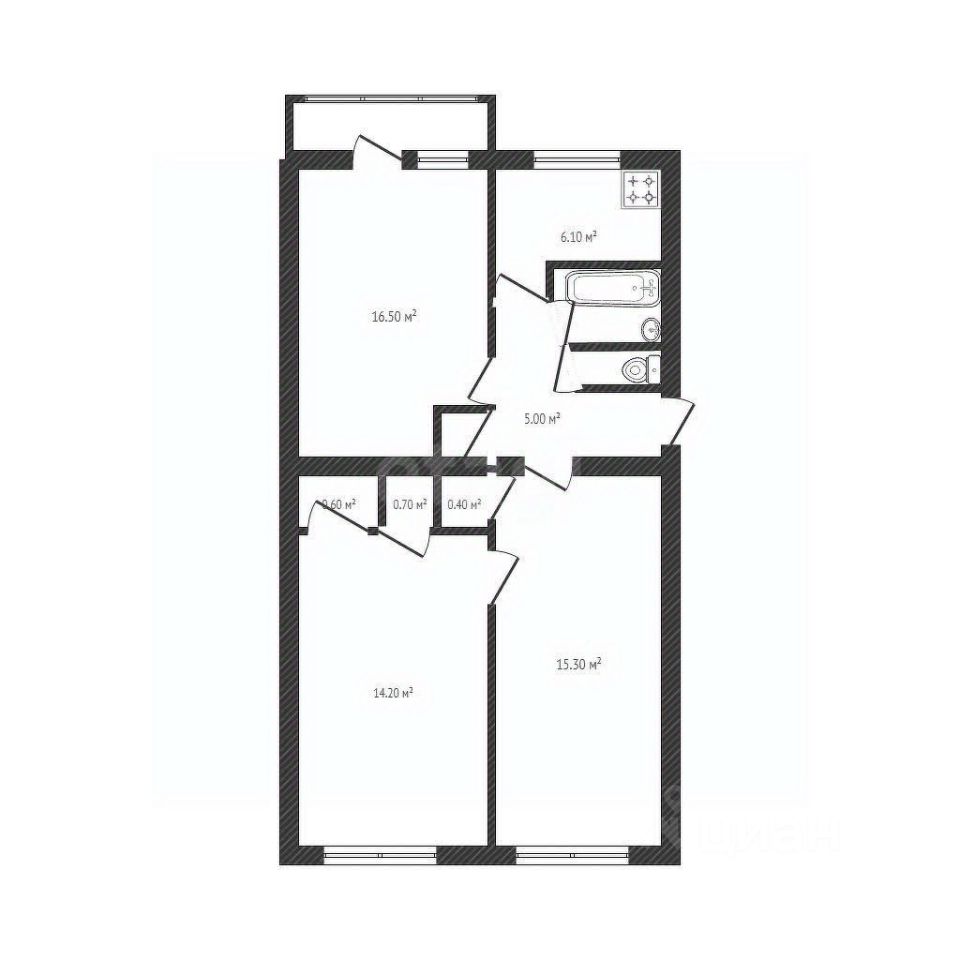 Комнаты (16,5кв.м/15.3 кв.м/14.2 кв.м), одна комната проходная.